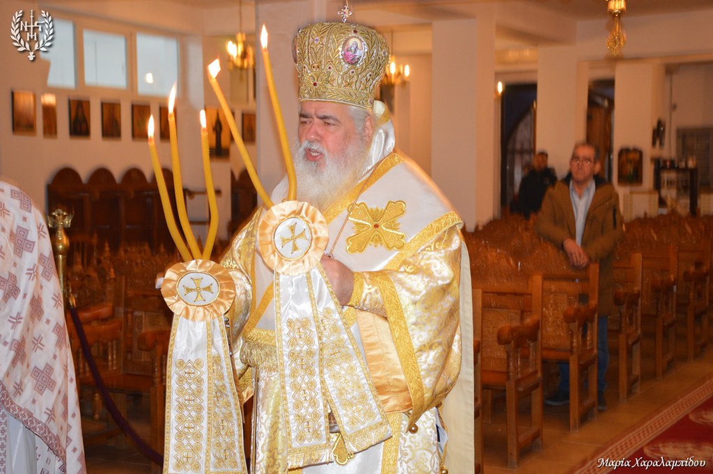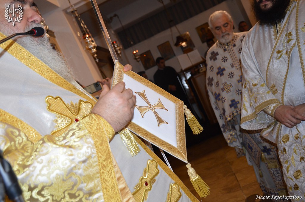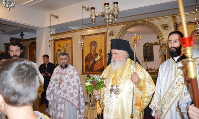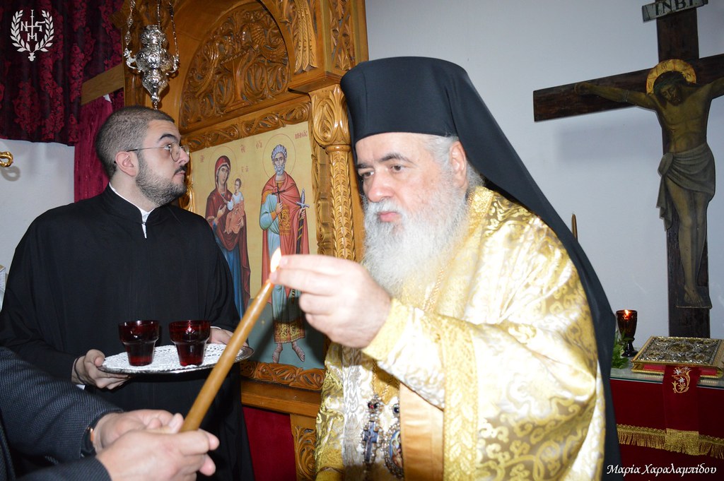 Μετά το πέρας της Θείας Λειτουργίας, ο Σεβασμιώτατος τέλεσε τον Αγιασμό των Θυρανοιξίων του Ιερού Παρεκκλησίου του Αγίου Μηνά το οποίο διαμορφώθηκε εντός του Ιερού Ναού.