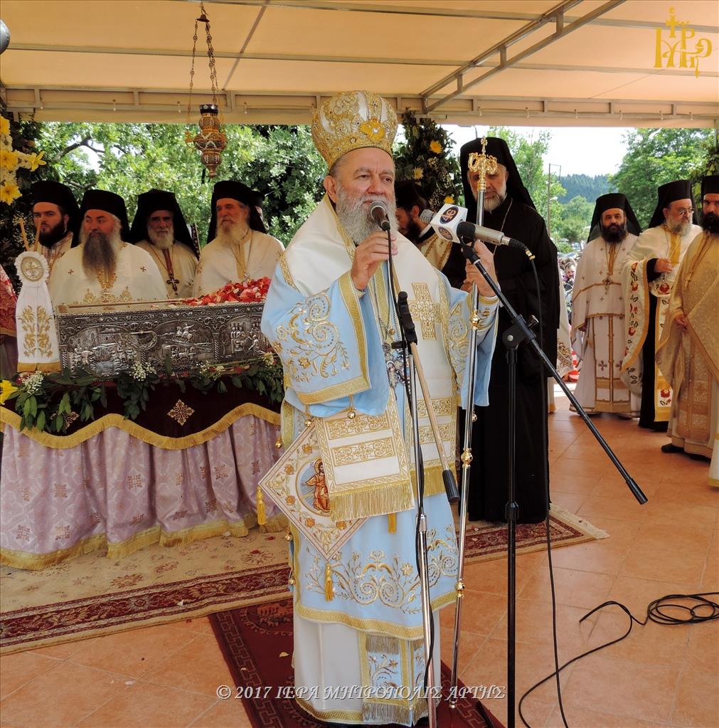 Στη συνέχεια εκήρυξε τον Θείο λόγο ο Σεβασμιώτατος Μητροπολίτης Καστορίας κ. Σεραφείμ, ο οποίος ομίλησε για τον Όσιο Ιωάννη, περιγράφοντας τον άγιο τρόπο της ζωής Του.
