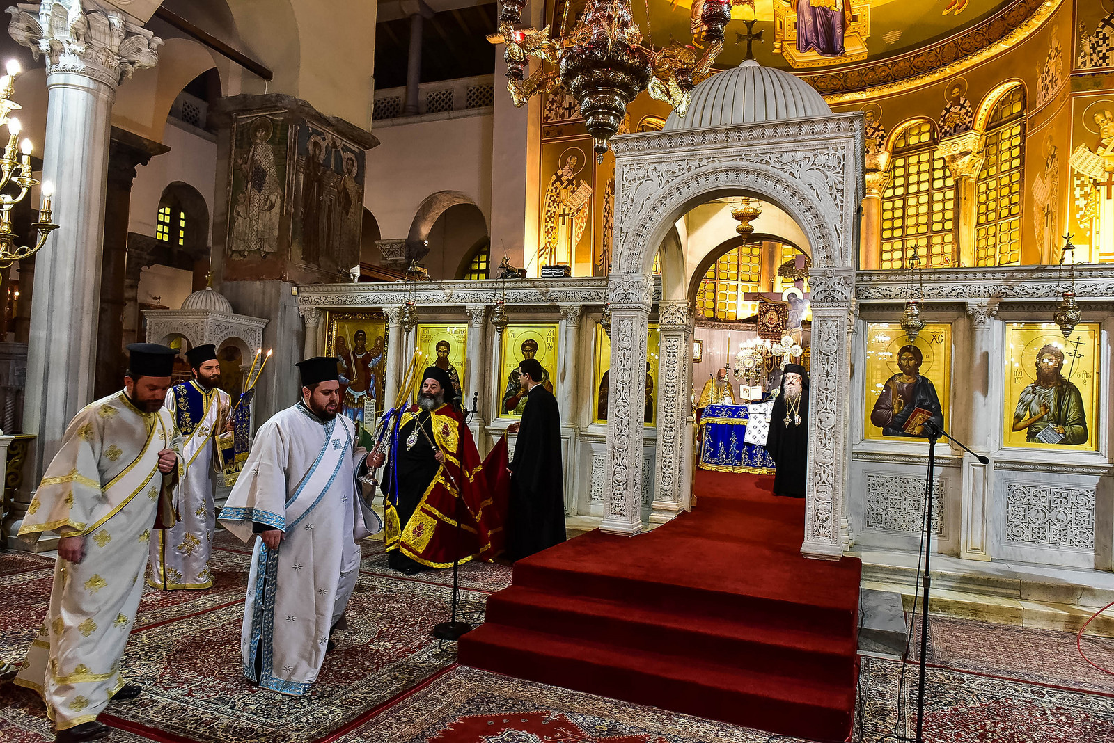 Στο Αρχιερατικό Συλλείτουργο προεξήρχε ο Παναγιώτατος Μητροπολίτης Θεσσαλονίκης κ.κ. Ανθίμου και συλλειτουργούντος του Σεβασμιωτάτου Μητροπολίτου Λαγκαδά, Λητής και Ρεντίνης κ.κ. Ιωάννου, ο οποίος και χοροστάτησε του Όρθρου.