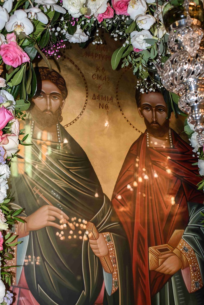 Μετά την κατανυκτική εσπερινή δέηση ο Επίσκοπος αναφερόμενος στο ζεύγος των Αγίων Αναργύρων Κοσμά και Δαμιανού υπογράμμισε το χάρισμα των ιαμάτων που είχαν λάβει ως δώρο ευλογίας από το Θεό, τόνισε ότι και σήμερα οι άνθρωποι μπορεί να γίνουν αποδέκτες της Χάριτος των ιάσεων, αν εκζητήσουν με πίστη δυνατή τη βοήθεια των Αγίων Αναργύρων.