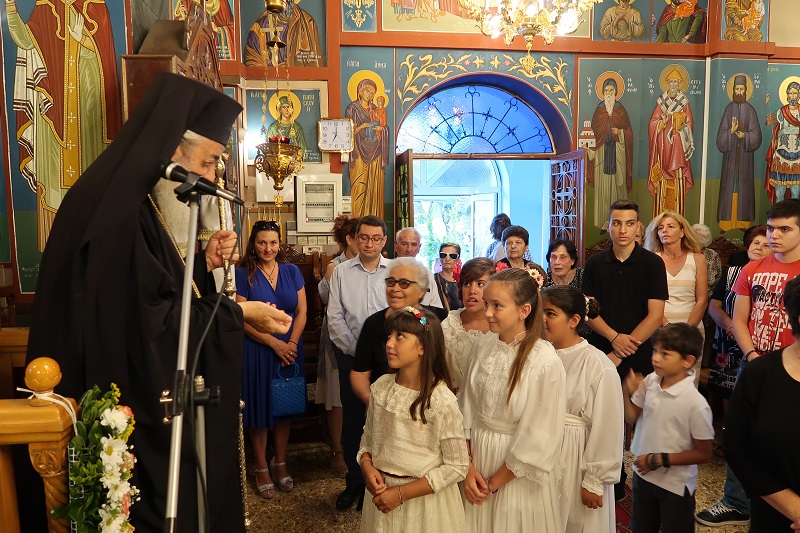 Ο Σεβασμιώτατος επίσης συνεχάρη τον Εφημέριο του Ναού π. Ευστάθιο Μαζιώτη, το Εκκλησιαστικό Συμβούλιο και όλες τις εθελόντριες κυρίες, για την πνευματική πρόοδο της Ενορίας, αλλά και την άρτια οργάνωση και διεξαγωγή της Ιεράς Πανηγύρεως.