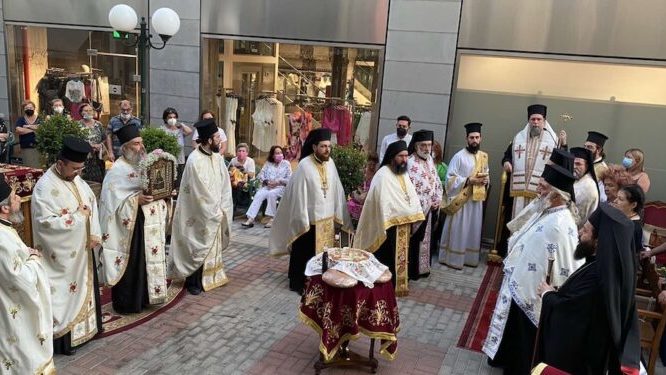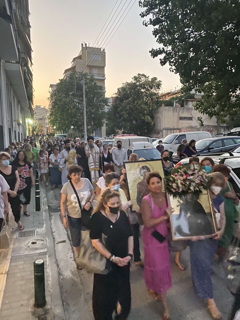 Ακολούθως πραγματοποιήθηκε λιτάνευση της Ιεράς Εικόνας και του Ιερού Λειψάνου της Αγίας Παρασκευής και του Αγίου Παντελεήμονος.