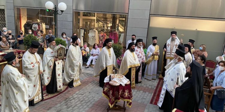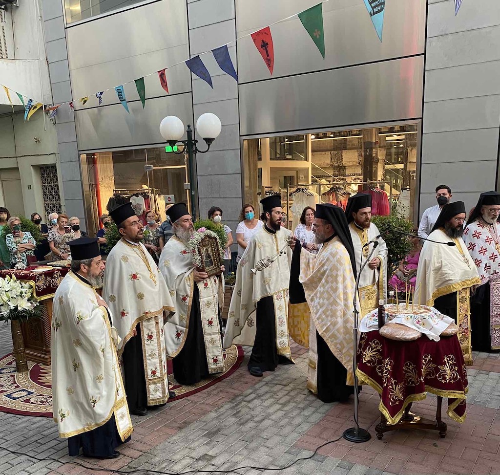 Με λαμπρότητα τελέσθηκε τη Δευτέρα 25 Ιουλίου 2022 ο Μέγας Αρχιερατικός Εσπερινός επί τη σεπτή μνήμη της Αγίας ενδόξου Οσιοπαρθενομάρτυρος Παρασκευής της Αθληφόρου στον υπαίθριο χώρο του ομώνυμου Ιερού Παρεκκλησίου που βρίσκεται στην είσοδο του Μητροπολιτικού Μεγάρου στη Νέα Ιωνία.