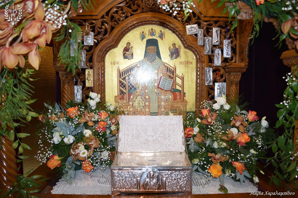 Το διακόνημα του λόγου ανέλαβε ο π. Στυλιανός Αναστασόπουλος ο οποίος ανέλυσε τρία χαρακτηριστικά της πολυσχιδούς προσωπικότητας του Αγίου Νεκταρίου. Ανέλυσε το χάρισμα της υπομονής του Ιεράρχη,  την εμβέλεια της αρχιερατικής του Χάρης καθώς και τη συγγραφική του ικανότητα.