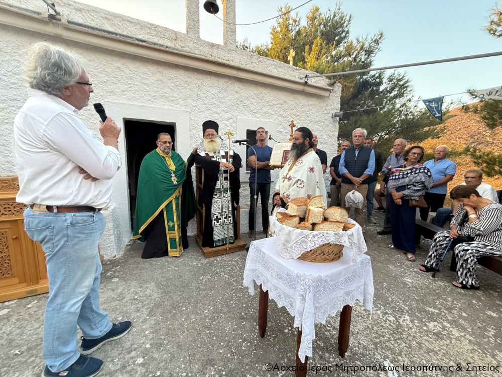 Στη συνέχεια ο παριστάμενος Δήμαρχος Σητείας κ. Γεώργιος Ζερβάκης προσφώνησε κατάλληλα τον Σεβ. κ. Κύριλλο και τη συνοδεία του, τον καλωσόρισε και τον ευχαρίστησε εκ μέρους των παρισταμέων προσκυνητών για την ευλογητική παρουσία του στον οικισμό της Μονοκαράς, όπου συνδέεται με προσωπικά βιώματα και αναμνήσεις.