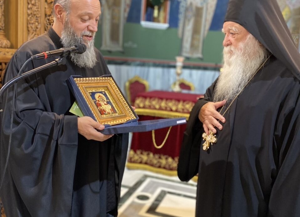 Ο π. Χριστόδουλος προσέφερε στον Πανοσιολ. Καθηγούμενο αντίγραφο της Παναγίας της Παρηγορητρίας εκ μέρους του Εκκλ. Συμβουλίου αλλά και όλης της Ενορίας καθώς και το νέο «Παρακλητικό Κανόνα εις την Παναγίαν την Παρηγορήτριαν την Δακρυρροούσαν και Μυροβλύζουσαν» ποίημα του Σεβ. Μητροπολίτου Εδέσσης κ. Ιωήλ.