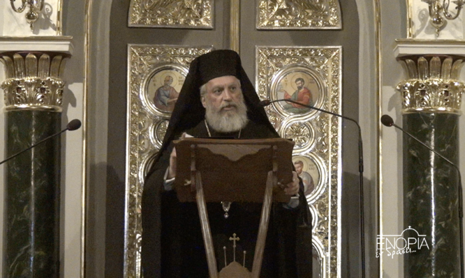 Πολλοί είναι οι ισχυροί του κόσμου, ένας είναι ο Σωτήρας του, είπε κλείνοντας την ομιλία του. Αμέτρητες οι γυναίκες, μία η Παναγία. Η ανάγκη να δει η κοινωνία μας Θεό αληθινό, να Τον ακούσει, να Τον πιστέψει, να Τον ακολουθήσει, βρήκε την ανταπόκριση κι ο ουρανός ήρθε στη γη. Και καθοριστικός ήταν ο ρόλος της Παναγίας μας.