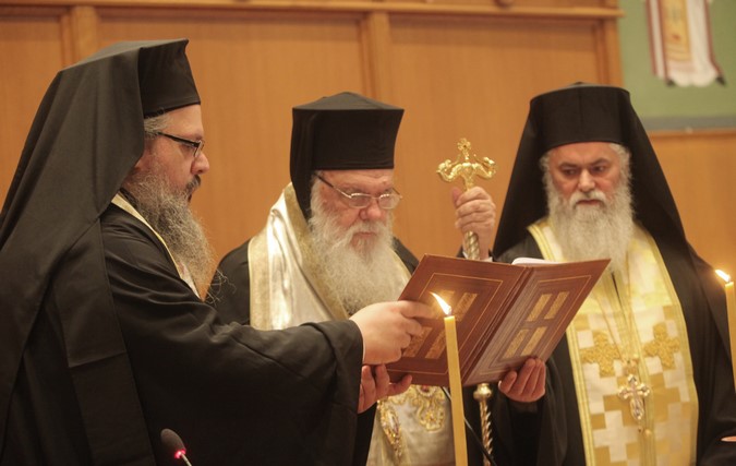Το πρωί τελέσθηκε Αρχιερατική Θεία Λειτουργία στο Συνοδικό Παρεκκλήσιο των Παμμεγίστων Ταξιαρχών, Καθολικό της Ιεράς Μονής Ασωμάτων Πετράκη, υπό του νεωτέρου τη τάξει Μητροπολίτη Μάνης κ. Χρυσοστόμου και αμέσως μετά άρχισαν οι εργασίες της Συνεδριάσεως με εναρκτήρια Ιερά Ακολουθία στο Μέγα Συνοδικό. Στη συνέχεια ο Αρχιεπίσκοπος Αθηνών και πάσης Ελλάδος κ. Ιερώνυμος, Πρόεδρος της Ιεράς Συνόδου της Ιεραρχίας, προσφώνησε τους Σεβασμιωτάτους Συνοδικούς Συνέδρους και αντιφώνησε ο πρώτος τη τάξει Μητροπολίτης Καρυστίας κ. Σεραφείμ. Ακολούθησε η εκλογή της Επιτροπής των Αρχιερέων για τις ανακοινώσεις στον Τύπο.