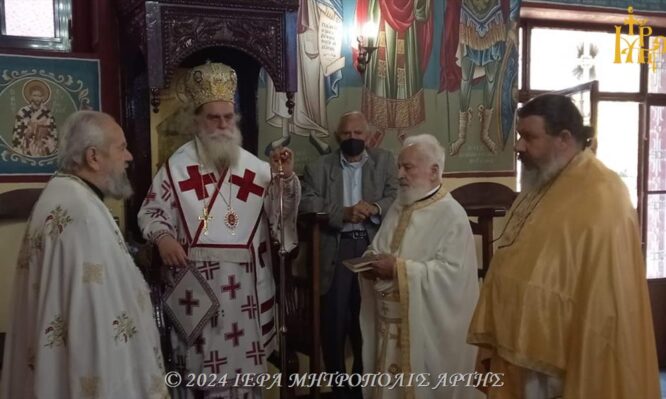 Στο πέρας της Θείας λειτουργίας, ο Σεβασμιώτατος απένειμε το οφφίκιο του Πρωτοπρεσβυτέρου στον Εφημέριο της Ενορίας Προφήτου Ηλιού Κάτω Γραικικού Ιερέα Κωνσταντίνο Πολύζο, ως αναγνώριση, της ιεροπρεπούς αναστροφής του προχειρισθέντος Ιερέως, αλλά και της πολυετούς φιλότιμης, ολοπρόθυμης και αγόγγυστης Ιερατικής διακονίας και προσφοράς του, καθώς και της υποδειγματικής υπακοής του στην Εκκλησία.