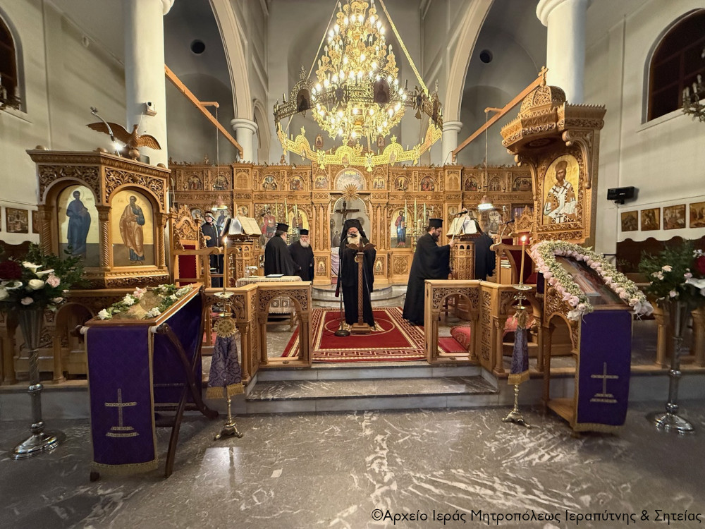 Το απόγευμα της Β΄ Κυριακής των Νηστειών, 8 Μαρτίου 2026, ο Σεβ. Μητροπολίτης Ιεραπύτνης και Σητείας κ. Κύριλλος χοροστάτησε στην ακολουθία του Κατανυκτικού Εσπερινού στον Ιερό Ναό Αγίου Γεωργίου πόλεως Σητείας. Τους κατανυκτικούς ύμνους απέδωσε χορός Ιεροψαλτών με επικεφαλής τον Αιδεσιμολ. πρωτ. Νικόλαο Αλεξάκη, καθηγητή της Σχολής Βυζαντινής Μουσικής της Ιεράς Μητροπόλεως και υπεύθυνο λειτουργίας στη Σητεία.