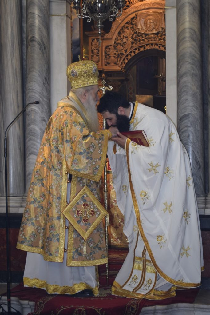 Τήν Κυριακή 2 Ἀπριλίου τ.ἒ. ὁ Σεβασμιώτατος Μητροπολίτης μας κ.κ. Εὐσέβιος χοροστάτησε τοῦ Ὂρθρου καί τέλεσε τήν Θ. Λειτουργία καθώς καί τήν εἰς Πρεσβύτερον Χειροτονία του διακόνου π. Ἰωάννου Μαργαρώνη στόν Ἱερό Μητροπολιτικό Ναό Ἁγίου Νικολάου Σάμου. Ὁ νεοχειροτομηθεῖς εἶναι ἒγγαμος καί τυγχάνει Πτυχιούχος τῆς Ἀνωτάτης Ἐκκλησιαστικῆς Πατριαρχικῆς Σχολῆς Κρήτης.
