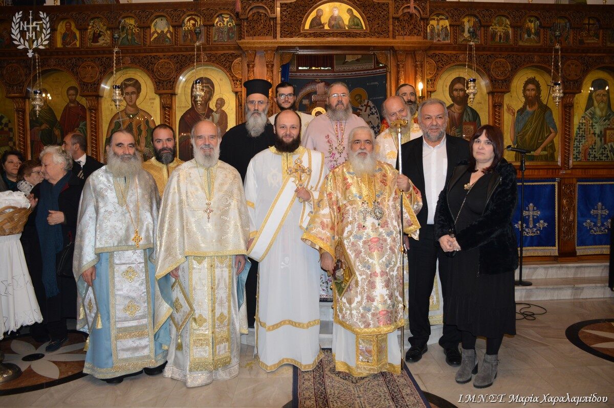 Είναι παράδοση στην τοπική εκκλησία να βρίσκεται ο Μητροπολίτης εδώ σε αυτόν τον Ιερό Ναό αυτή την ημέρα, και είναι παράδοση να τελείται και χειροτονία. Σήμερα ο μοναχός Θεοχάρης, καθηγητής φυσικός πτυχιούχος από το ΑΠΘ, και με μεταπτυχιακό στην αστρονομία, είναι από το Μητροπολιτικό Ναό του Αγίου Γεωργίου Νεαπόλεως. Τού έδωσα το όνομα του Αγίου Θεοχάρη που ήταν πνευματικό τέκνο του Αγίου Γεωργίου του Νεαπολίτου. Την ημέρα αυτή τιμώ όλα τα παιδιά που αγωνίζονται, ομολογούν, ζουν ιεραποστολικά. Εμείς μεγαλώνουμε. Πρέπει να υπάρξουν διάδοχοι στο έργο της Εκκλησίας. Να μιλάτε στα παιδιά για το Θεό όσο είναι μικρά.