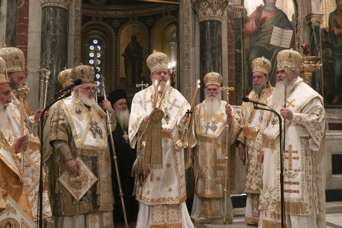 Συλλειτούργησαν οι Σεβασμιώτατοι Μητροπολίτες Αρκαλοχωρίου, Καστελλίου και Βιάννου κ. Ανδρέας, Μεσογαίας και Λαυρεωτικής κ. Νικόλαος, Ιλίου, Αχαρνών και Πετρουπόλεως κ. Αθηναγόρας, Νέας Ιωνίας, Φιλαδελφείας, Ηρακλείου και Χαλκηδόνος κ. Γαβριήλ, Ιωαννίνων κ. Μάξιμος, Νέας Κρήνης και Καλαμαριάς κ. Ιουστίνος, Λήμνου και Αγίου Ευστρατίου κ. Ιερόθεος, Μαντινείας και Κυνουρίας κ. Επιφάνιος και Κορίνθου κ. Παύλος.
