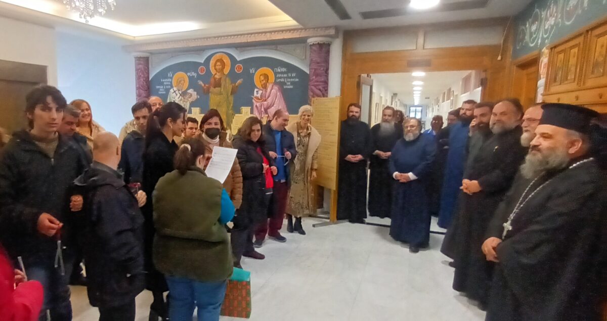Με μέριμνα του Κέντρου Στήριξης Οικογένειας (ΚΕ.Σ.Ο.) της Ιεράς Αρχιεπισκοπής Αθηνών, για δέκατη συνεχόμενη χρονιά, ολιγομελής χορωδία και ορχήστρα αποτελούμενη, κατά το παρόν έτος, από μαθητές του 170ού Δημοτικού Σχολείου Αθηνών και του 2ου Δημοτικού Σχολείου Ασπροπύργου επισκέφθηκε σήμερα, Παρασκευή 20 Δεκεμβρίου, τα Γραφεία της Ιεράς Συνόδου της Εκκλησίας της Ελλάδος, της ΑΠΟΣΤΟΛΙΚΗΣ ΔΙΑΚΟΝΙΑΣ και της Ε.Κ.Υ.Ο. Οι μαθητές, συνοδευόμενοι από εκπαιδευτικούς των Σχολείων, με επικεφαλής τους Διευθυντές αυτών, κ. Μιχαήλ Χωριανόπουλο και Σοφία Παππού, έψαλαν κάλαντα, παρόντος του Αρχιγραμματέως της Ιεράς Συνόδου, Πανοσιολ. Αρχιμανδρίτου κ. Ιωάννου Καραμούζη, της Διευθύντριας του ΚΕ.Σ.Ο. κ. Μαίρης Πίνη, καθώς και Κληρικών και λαϊκών Συνοδικών Υπαλλήλων.