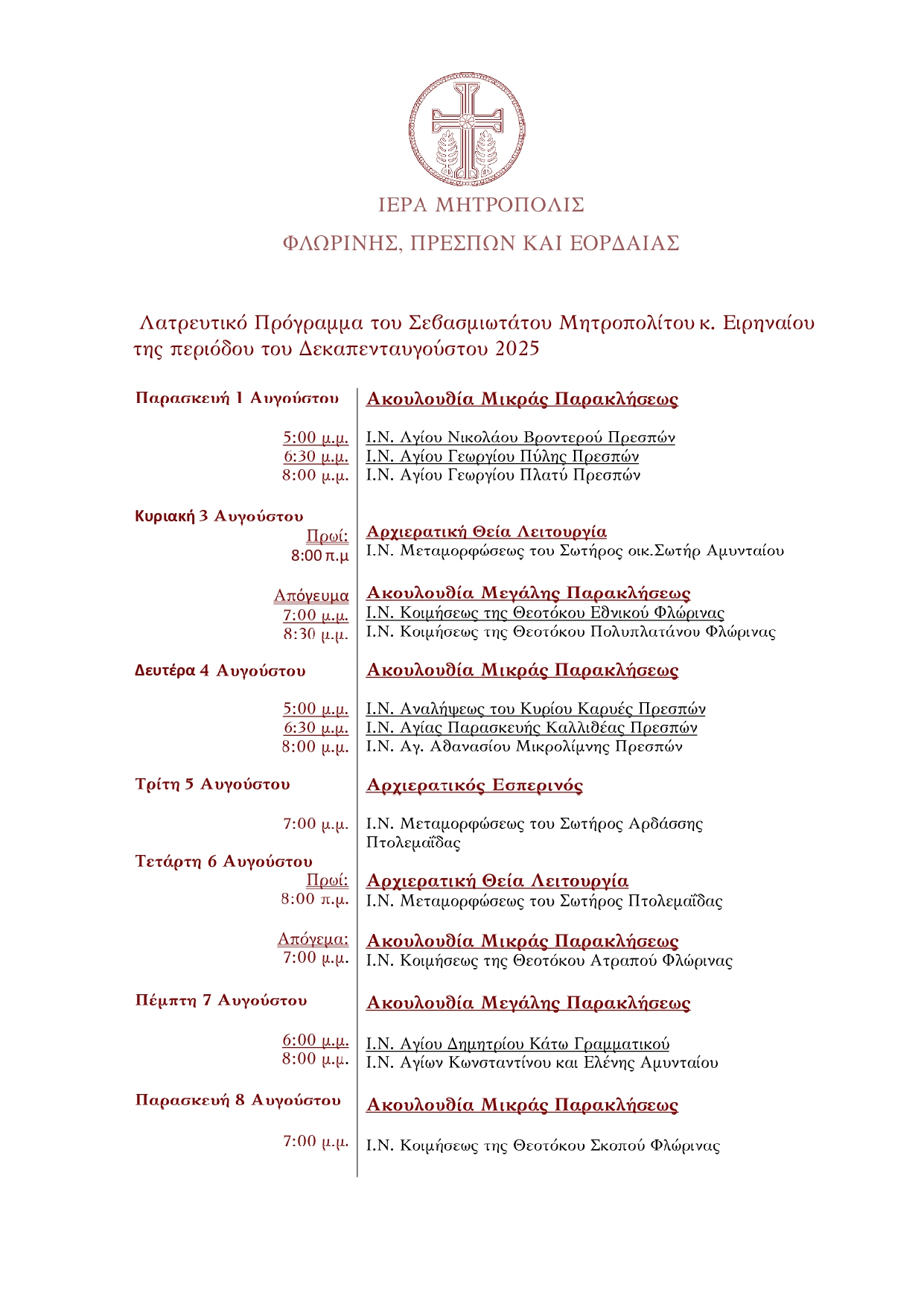 Χοροστασίες Φλωρίνης Ειρηναίου τον 15Αύγουστο
