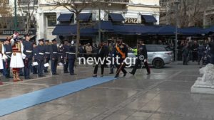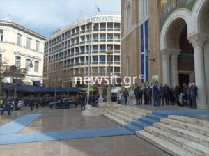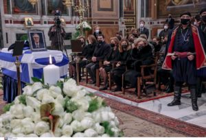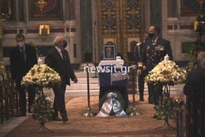 Σκεπασμένο με την γαλανόλευκη το φέρετρο με την σορό του πρώην Προέδρου της Δημοκρατίας, Χρήστου Σαρτζετάκη, το οποίο μεταφέρθηκε νωρίτερα σήμερα στην Μητρόπολη Αθηνών για την κηδεία του εκλιπόντος πρώην Προέδρου της Δημοκρατίας.
