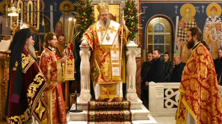 Η Ακολουθία, κατά εύρος, ξεκίνησε από τις πέντε το πρωί, ενώ ο Ναός γέμισε γρήγορα, λίγο μετά. Στα μάτια όλων έλαμπε η προσμονή και η χαρά της ελπίδος, ενώ φαινόταν πως το μήνυμα των Χριστουγέννων ακουμπούσε τις ψυχές όλων. Χαρακτηριστικό της Θείας Λειτουργίας, τα πολλά νήπια και παιδιά, τα οποία έσπευσαν να κατακλύσουν τον Ιερό Ναό, ενώ κάποια από αυτά προσήλθαν και στο Ιερό Βήμα, ώστε να διακονήσουν κατά τη διάρκεια της Ακολουθίας. Παρά τη φυσιολογική για την παιδική ηλικία νύστα, η επαγρύπνηση και η παρατήρηση των τελουμένων, βοήθησαν τα παιδιά να ζήσουν και να χαρούν τα όσα γίνονταν στον Ναό. Οι χοροί των Ιεροψαλτών απέδωσαν με τρόπο μοναδικό τους ύμνους της ημέρας, συναρπάζοντας και κατανύσσοντας. Το μήνυμα των Χριστουγέννων αναγνώσθηκε στο Κοινωνικό, από τον προϊστάμενο του Ιερού Μητροπολιτικού Ναού, Πανοσιολ. Αρχιμανδρίτη κ. Ραφαήλ Ευαγγέλου. Στη συνέχεια ξεκίνησε η Θεία Κοινωνία, κατά την οποία μετέλαβε των Αχράντων Μυστηρίων σχεδόν το σύνολο του εκκλησιάσματος.