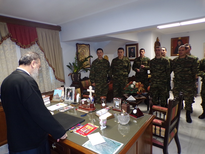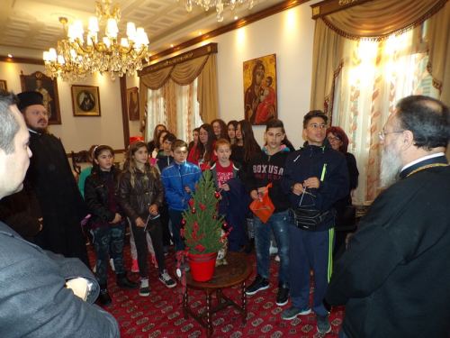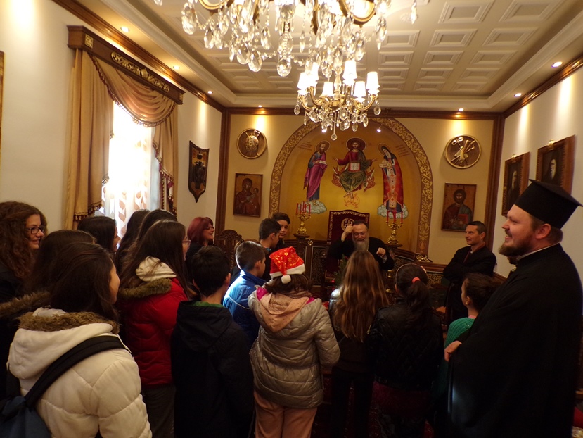 Ο Σεβασμιώτατος περιχαρής δέχθηκε όλους όσοι τήρησαν το παμπάλαιο Εκκλησιαστικό έθιμο και αφού τους ξενάγησε στους χώρους του ανακαινισμένου Επισκοπείου της Ι. Μητροπόλεως, μαζί με την ευλογία του, το παραδοσιακό κέρασμα και τη διανομή του Ημερολογίου του 2016 της Ι. Μητροπόλεως ευχήθηκε κατάλληλα με την περίσταση, τα πρόσωπα, την ηλικία και τον θεσμό που εκπροσωπούσαν το «Καλά Χριστούγεννα»