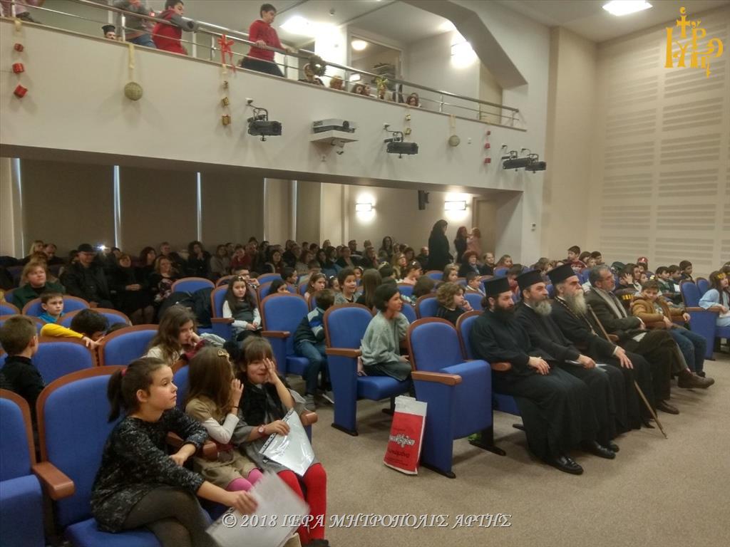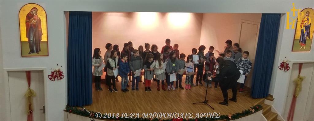 Το Σάββατο 15 Δεκεμβρίου 2018, το πρωΐ, στο Πνευματικό Κέντρο της Ιερας Μητροπόλεως Άρτης «΄Αγιος Ιωάννης ο Θεολόγος» πραγματοποιήθηκε Χριστουγεννιάτικη εκδήλωση από τα Κατηχητικά Σχολεία της Τοπικής Εκκλησίας.