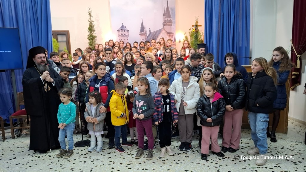 Εδώ, όμως, σήμερα τα παιδιά μάς έδωσαν πολλά μηνύματα, τα οποία πρέπει να τα κρατήσουμε πρώτα εμείς οι μεγαλύτεροι. Το βασικότερο μήνυμα είναι, ότι ο Χριστός θα γίνει άνθρωπος για να μπορέσουμε εμείς οι άνθρωποι να γίνουμε θεοί. Πριν από 2000 χρόνια γεννήθηκε στη Φάτνη της Βηθλεέμ και σε λίγες ώρες θα γεννηθεί στη φάτνη της καρδιάς μας. Αν θέλουμε να τον προσκυνήσουμε θα πρέπει να έχουμε την απλότητα και την καθαρότητα των ποιμένων. Θα δεχτεί και τα δικά μας δώρα, που θα είναι το χρυσάφι της αγάπης μας, το λιβάνι της υπακοής μας και η σμύρνα της μίμησης της δικής Του ζωής. Όταν όλα αυτά τα κάνουμε, τότε ολόκληρη η ζωή μας θα λάμπει, όπως έλαμψε εκείνη τη σκοτεινή νύχτα το άστρο που φώτισε τον ουρανό και οδήγησε τους μάγους και τους αγγέλους που έψαλαν ακατάπαυστα τον ύμνο της ειρήνης. Καλά και ευλογημένα Χριστούγεννα σε όλους».