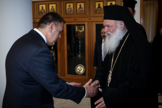 Από την πλευρά του ο υπουργός ευχαρίστησε τον Αρχιεπίσκοπο και τα μέλη της ΔΙΣ υπογραμμίζοντας ότι «ανέκαθεν οι Ένοπλες Δυνάμεις αγωνίζονται για τα εθνικά δίκαια με την βοήθεια και την ευλογία της Εκκλησίας».