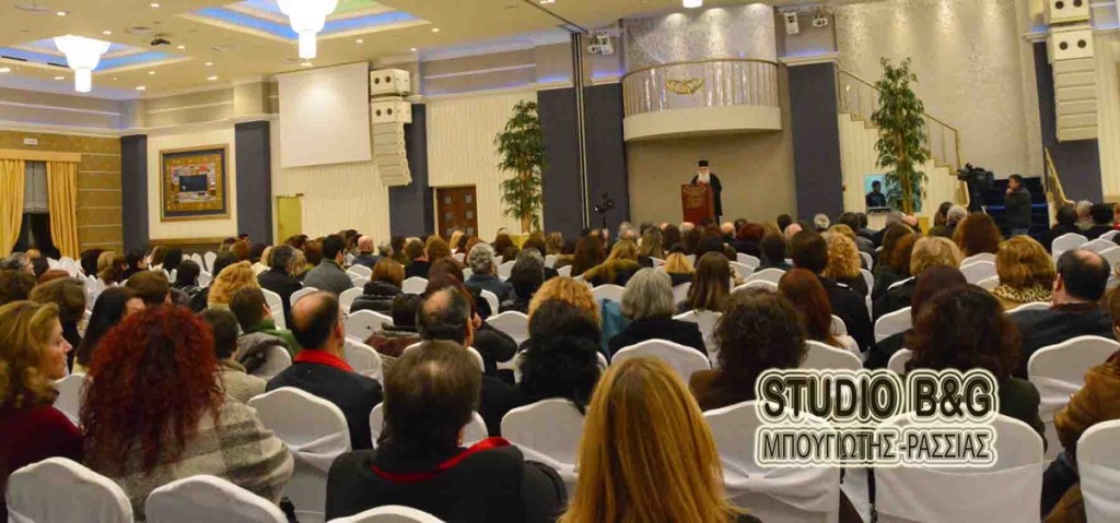 Σε μία κατάμεστη αίθουσα από εκατοντάδες καθηγητές και δασκάλους, ο μητροπολίτης ανέπτυξε διάφορα θέματα για την παιδεία αλλά και για το μεγάλο έργο των Τριών Ιεραρχών.