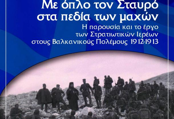 Διάλεξη με θέμα «Με όπλο τον Σταυρό στα πεδία των μαχών: Η παρουσία και το έργο των Στρατιωτικών Ιερέων στους Βαλκανικούς Πολέμους 1912-1913» διοργανώνει η Διεύθυνση Στρατιωτικών Ιερέων ΓΕΕΘΑ την Πέμπτη 14 Νοεμβρίου.
