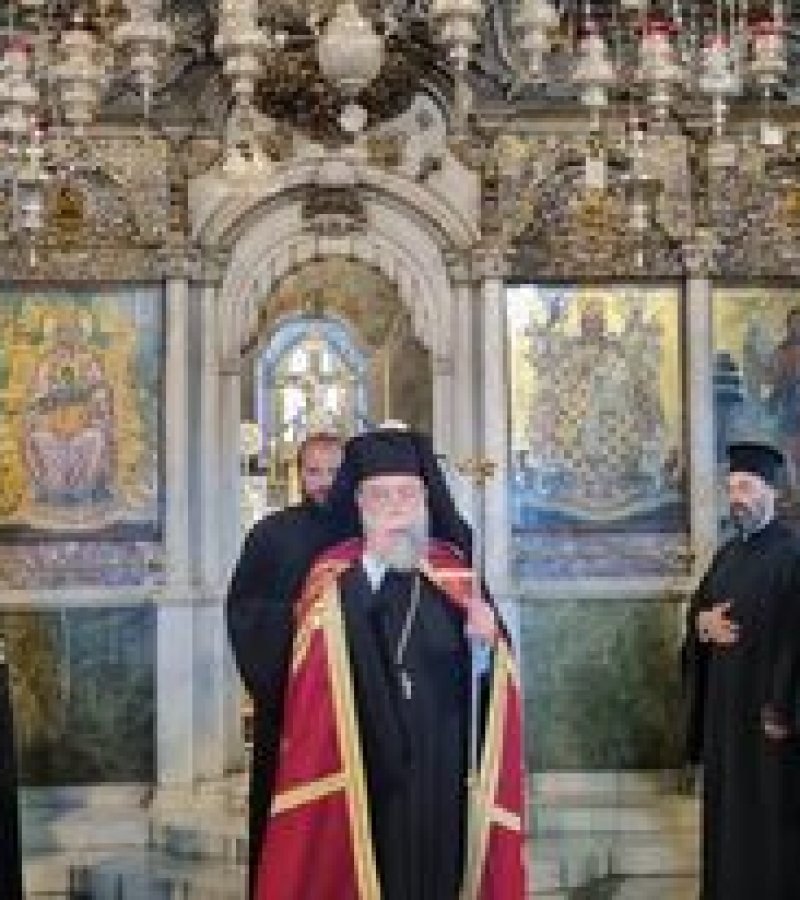Προ της απολύσεως εκ μέρους του Σεβασμιωτάτου Μητροπολίτου Σύρου κ. Δωροθέου, προσεφώνησε τον Σεβασμιώτατο κ. Κύριλλο και τους προσκυνητές ο Ιεροκήρυξ του Ιερού Προσκυνήματος Πανοσιολογιώτατος Αρχιμανδρίτης π. Ιάκωβος Σέττας.