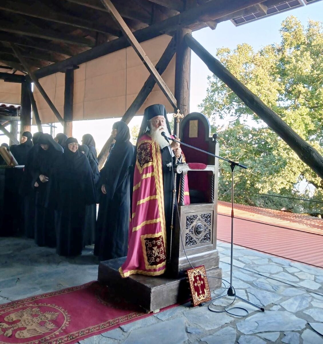 Στο κήρυγμά του ο Σεβασμιώτατος αναφέρθηκε στην ανασυγκρότηση της Μονής, μετά από πολλά χρόνια εγκατάλειψης και στις νέες σελίδες της ιστορίας της, χάρη στην πολυεθνική αδελφότητά της. «Η παρουσία της», επεσήμανε, «αποδεικνύει την οικουμενικότητα της Ορθοδοξίας, καταγράφει μια ξεχωριστή ιστορία τον Ελλαδικό χώρο και δίδει μία μοναδική μαρτυρία στον σύγχρονο κόσμο, μεταξύ των άλλων και για την αγάπη και τον σεβασμό προς το φυσικό περιβάλλον, την οποία διακηρύσσει».