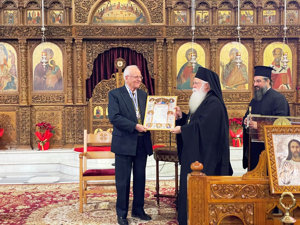 Ακολούθως, απένειμε στον κ. Κωνσταντίνο Μαυρομάτη την Ανώτατη Τιμητική Διάκριση της Ιεράς Μητροπόλεως Δημητριάδος, τον Χρυσό Σταυρό μετά Διπλώματος, ως ελάχιστη έκφραση ευγνωμοσύνης για την πολυετή και ανεκτίμητη προσφορά του στην Εκπαίδευση και την κοινωνία.
