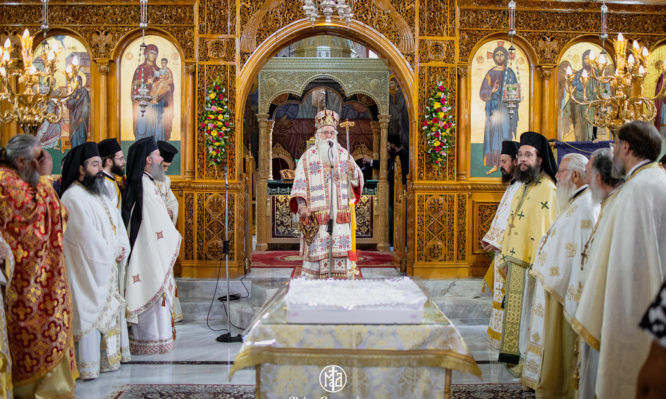 Στο τέλος της Θείας Λειτουργίας, ο Σεβασμιώτατος τέλεσε επιμνημόσυνη δέηση για τις ψυχές των θυμάτων της Μικρασιατικής Καταστροφής και των προσφύγων προγόνων μας.