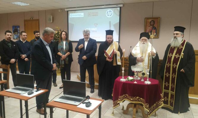 Παρόντες στον αγιασμό ήταν ο Θεματικός Αντιπεριφερειάρχης Ψηφιακής Διακυβέρνησης και Εξυπηρέτησης Πολιτών Περιφέρειας Θεσσαλίας κ. Γιάννης Αναστασίου, ο Διευθύνων Σύμβουλος της εταιρείας HP κ. Νίκος Χρηστάκης και η Διευθύντρια της Αστικής Μη Κερδοσκοπικής Εταιρείας Socialinnov κ. Στέλλα Ψαρρού.