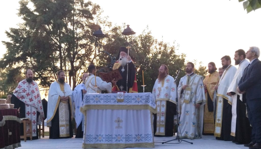 Παρουσία της διοίκησης του Αχιλλοπούλειου Νοσοκομείου Βόλου, καθώς και πλήθους προσκυνητών που συνέρρευσαν σ’αυτό το σημείο αναφοράς για την πόλη του Βόλου, ο Σεβασμιώτατος, τέλεσε υπαιθρίως την ακολουθία του Μεγάλου Πανηγυρικού Εσπερινού, μετ’αρτοκλασίας και θείου κηρύγματος.