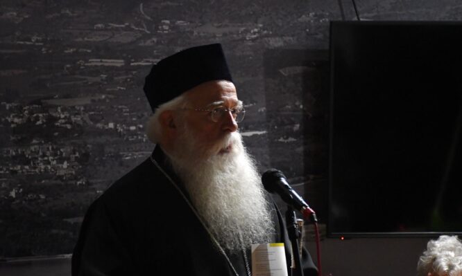 Στον χαιρετισμό του, ο Σεβασμιώτατος ανέφερε ότι «Σας ευχαριστώ που μας καλείτε σε ένα γεγονός που δεν αφορά μόνο το παρελθόν αλλά και το παρόν μας. Το Μουσείο της Πόλης έχει κατορθώσει κάθε φορά να σφραγίζει τη ζωή μας, αναδεικνύοντας θέματα που δεν είναι απλώς ιστορικά, αλλά καθορίζουν και το μέλλον μας».