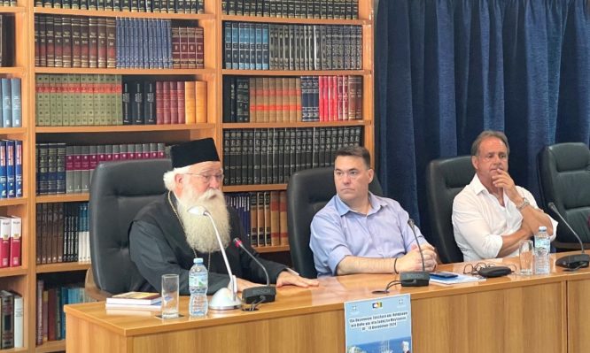 Τέλος, ευχαρίστησε τους διοργανωτές του συνεδρίου και προσέφερε στους συμμετέχοντες ένα βιβλίο της Καινής Διαθήκης, ένα CD με την ζωή του Ιησού Χριστού και ένα αναμνηστικό αφιέρωμα με όλα τα μοναστήρια της Μητροπόλεως.