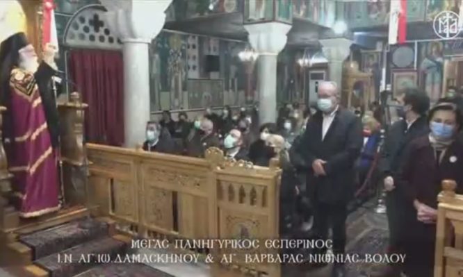 Στον πανηγυρίζοντα Ιερό Ναό των Αγίων Ιωάννου του Δαμασκηνού και Αγίας Βαρβάρας Νέας Ιωνίας Βόλου, χοροστάτησε απόψε το απόγευμα ο Σεβασμιώτατος Μητροπολίτης Δημητριάδος και Αλμυρού κ.Ιγνάτιος, στον Μεγάλο Πανηγυρικό Εσπερινό.