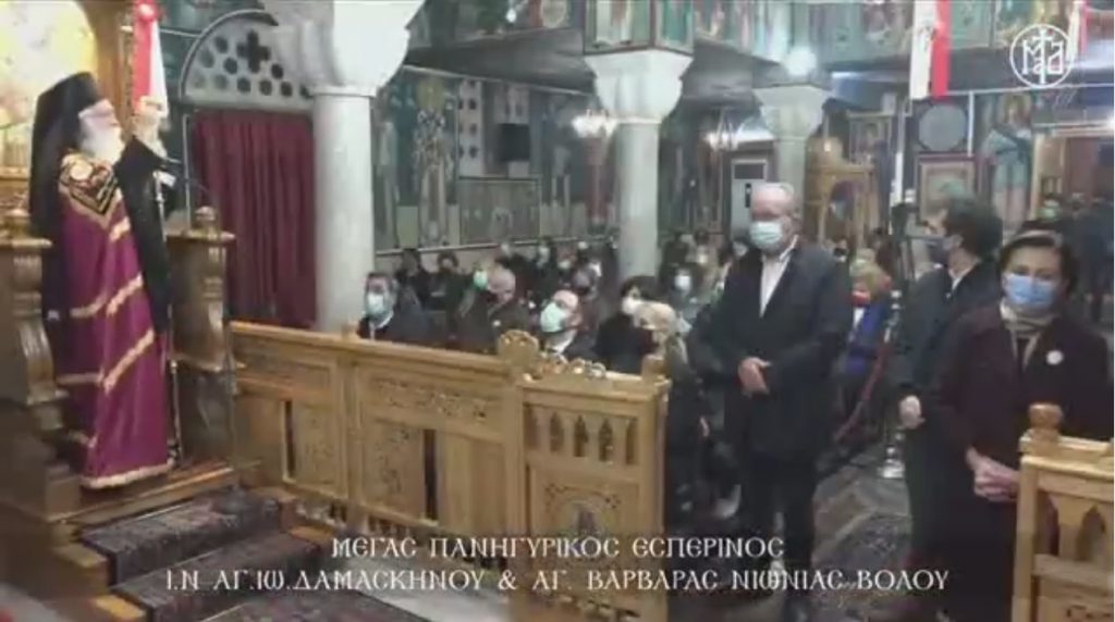 Στον πανηγυρίζοντα Ιερό Ναό των Αγίων Ιωάννου του Δαμασκηνού και Αγίας Βαρβάρας Νέας Ιωνίας Βόλου, χοροστάτησε απόψε το απόγευμα ο Σεβασμιώτατος Μητροπολίτης Δημητριάδος και Αλμυρού κ.Ιγνάτιος, στον Μεγάλο Πανηγυρικό Εσπερινό.