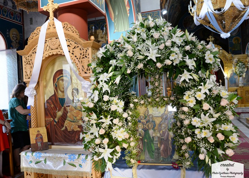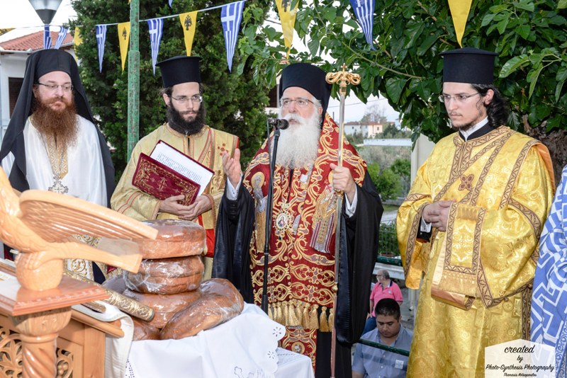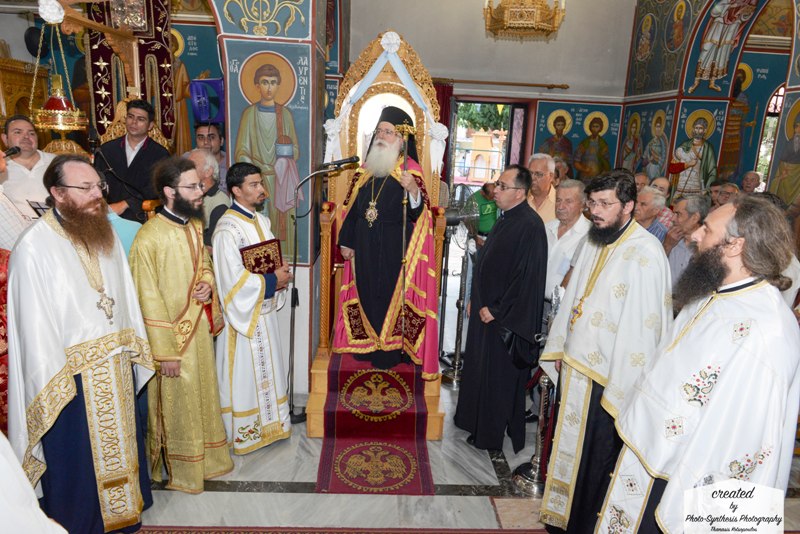 Ακολούθησε η λιτάνευση της Ιεράς Εικόνας πέριξ του Ι. Ναού και η αρτοκλασία, ενώ ανήμερα της εορτής την Πανηγυρική Θεία Λειτουργία τέλεσε ο Πρωτοσύγκελος της Μητροπόλεως, Αρχιμ. Δαμασκηνός Κιαμέτης, ο οποίος κήρυξε τον Θείο Λόγο.