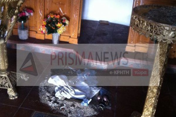 Μπροστά σε ένα απίστευτο θέαμα βρέθηκαν σήμερα το πρωί οι πιστοί στο μικρό ναό στην περιοχή της Λυγαριάς στο Ηράκλειο. Άγνωστοι δράστες διέρρηξαν το εκκλησάκι και βεβήλωσαν το εσωτερικό του ναού.