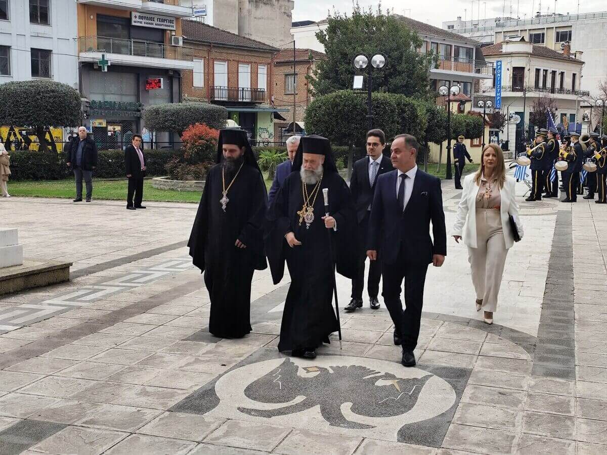Στη συνέχεια, παρακολούθησε την καθιερωμένη μαθητική και στρατιωτική παρέλαση της πόλεώς μας, η οποία πραγματοποιήθηκε με ιδιαίτερη λαμπρότητα.