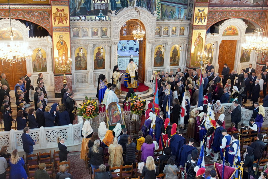 Στον Καθεδρικό Ιερό Ναό Αγίας Τριάδος εψάλη η Πανηγυρική Δοξολογία, Χοροστατούντος του Σεβασμιωτάτου Μητροπολίτου Πειραιώς κ.Σεραφείμ, παρουσία των πολιτικών και στρατιωτικών αρχών της πόλεως του Πειραιά.