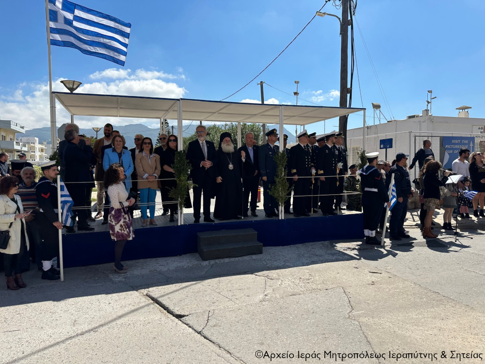 Η επίσημη Δοξολογία για την Εθνική Επέτειο της 25ης Μαρτίου του 1821 στον Ιερό Καθεδρικό Ναό Αγίας Αικατερίνης Σητείας, χοροστατούντος του Σεβ. Μητροπολίτου Ιεραπύτνης και Σητείας κ. Κυρίλλου, με τη συμμετοχή του Ιερού Κλήρου και την παρουσία των εκπροσώπων των τοπικών Αρχών. Τον πανηγυρικό της ημέρας εκφώνησε η κ. Ελένη Πλατανάκη, Αντιδήμαρχος Καθαριότητας και Πρασίνου του Δήμου Σητείας, η οποία με λόγο μεστό μίλησε για τον νόημα της εορτής και ιδιαίτερα για τον ρόλο των γυναικών στην Ελληνική Επανάσταση.