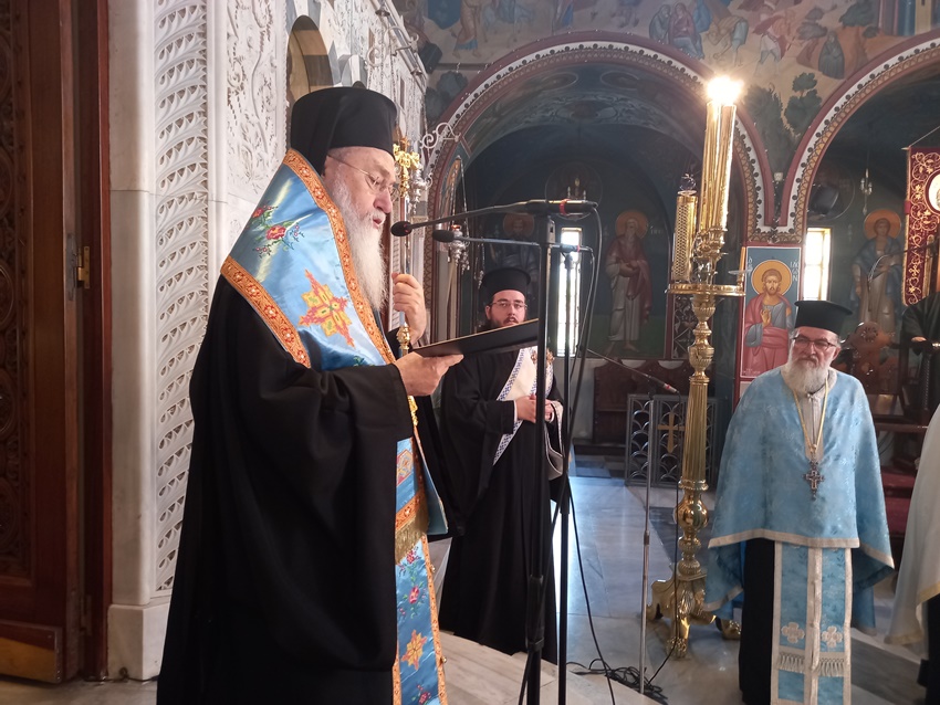 Τον πανηγυρικό της ημέρας εξεφώνησε ο Αντισυνταγματάρχης κ. Γρηγόριος Μπερτάκης ομιλών για την σπουδαιότητα των Ενόπλων Δυνάμεων για την μικρή Χώρα μας, ενώ ο Σεβασμιώτατος, στον σύντομο λόγο του, επεσήμανε ότι η Υπέρμαχος Στρατηγός μας, που εορτάζει σήμερα, πάντοτε θα σκεπάζει τον φιλόχριστο Στρατό και τις Ένοπλες Δυνάμεις μας, που έχουν αφιερωθεί στην προστασία της Πατρίδας μας μαχόμενοι «υπέρ βωμών και εστιών». Οι δε απειλές πολέμου, από την γείτονα Χώρα, μέσω μάλιστα του γνωστού τούρκικου τραγουδιού «θα ‘ρθω μια νύκτα», απαντώνται από την Εκκλησία μας με την γνωστή ελληνική παροιμία «της νύκτας τα καμώματα τα βλέπει η μέρα και γελά…». Ελάτε επομένως, όπως άλλοι κομπορρημονούντες και «κοκορόμυαλοι» στο παρελθόν, και θα εισπράξετε αυτό ακριβώς που αξίζετε, χωρίς αυτή η τοποθέτηση να αποτελεί απειλή, παρά μόνον ευχή και προσευχή για φωτισμό της διαχείρισης της κρίσης από την Πολιτική και Στρατιωτική Ηγεσία και των δύο Χωρών.