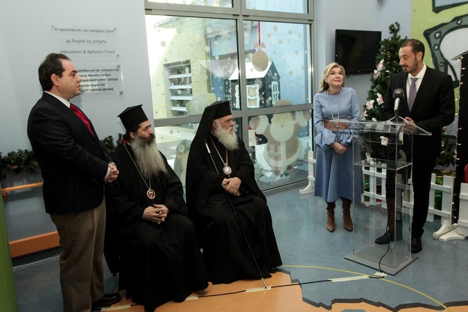 Τον Αρχιεπίσκοπο και την συνοδεία του υποδέχθηκαν στο Ογκολογικό Νοσοκομείο Παίδων η κ. Μαριάννα Βαρδινογιάννη, πρόεδρος του Συλλόγου Φίλων Παιδιών με Καρκίνο, ο Διοικητής του Νοσοκομείου, γιατροί, διοικητικό προσωπικό, γονείς και παιδιά.