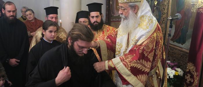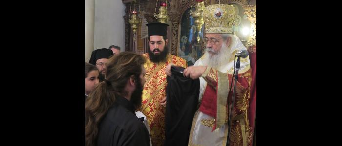 Προ της απολύσεως της Θείας Λειτουργίας και μέσα σε κλίμα συγκινήσεως, ο Σεβασμιώτατος ανέγνωσε την ευχή ρασοφορίας σε δύο δόκιμους μοναχούς της Ιεράς Μονής στον Παρασκευά Χυμευτό εξ Αταλάντης και στον Κυπριανό Κουκούλη εκ Λαμίας. Τον μεν Παρασκευά ο Σεβασμιώτατος μετονόμασε σε π. Μωυσή, δίνοντας του το όνομα του Μεγάλου Προφήτου και εις μνημόσυνον του αειμνήστου Γέροντος Μωυσέως του Αγιορείτου με τον οποίο ο Ποιμενάρχης μας συνδεόταν πνευματικά και αδελφικά. Τον Κυπριανό μετονόμασε σε π. Παρθένιο για τον μεγάλο Άγιο της Εκκλησίας μας, προστάτου των Καρκινοπαθών, του οποίου τεμάχιο της Τιμίας και Θαυματουργού Κάρας κατέχει η Ιερά Μονή Αγάθωνος, αλλά και εις μνημόσυνον του αδελφικού φίλου του Σεβασμιωτάτου καλοκάγαθου και ταπεινού Μακαριστού Αρχιμανδρίτου π. Παρθενίου Δόριζα.