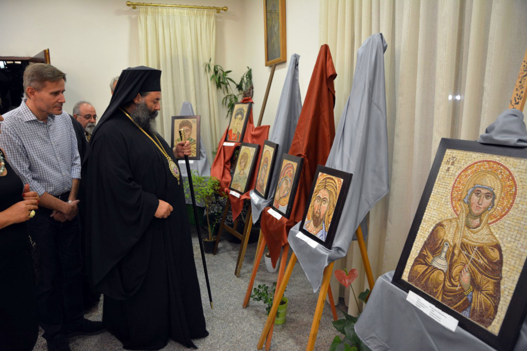Μετά το πέρας του αγιασμού, ο μητροπολίτης κ. Ιωάννης στην ομιλία του τόνισε την σημασία που έχει η ψηφιδογραφία στην Χριστιανική τέχνη και συνεχάρη όλους όσους συμμετείχαν στην έκθεση.