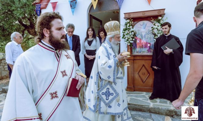Επισφραγίζοντας την θρησκευτική τελετή, ο Σεβασμιώτατος εξέφρασε επαίνους στους κτήτορες του Ναού, τον ιατρό κ. Ιωάννη Ρούσσο με τη σύζυγό του Πελαγία, καθώς και το συγγενικό τους περιβάλλον, για την θεάρεστη πρωτοβουλία τους και το ανύστακτο ενδιαφέρον τους μέχρι να ολοκληρωθούν οι εργασίες. Παράλληλα τους ευχήθηκε προσωπική και οικογενειακή υγεία, χαρά και κατά Θεόν προκοπή.