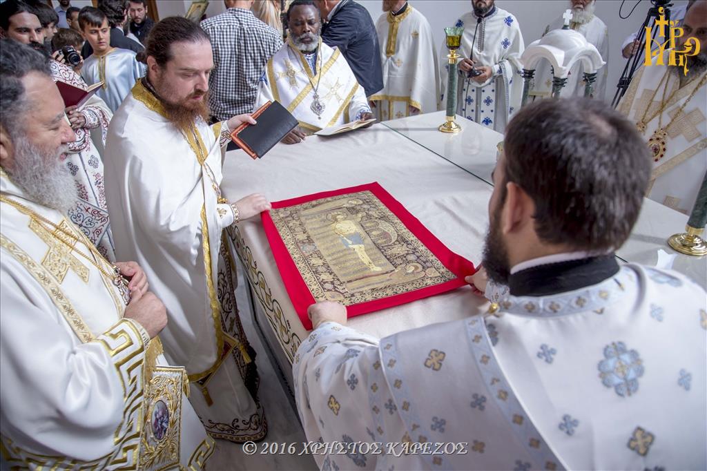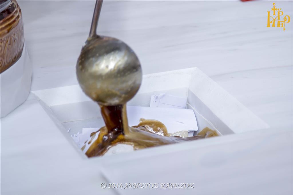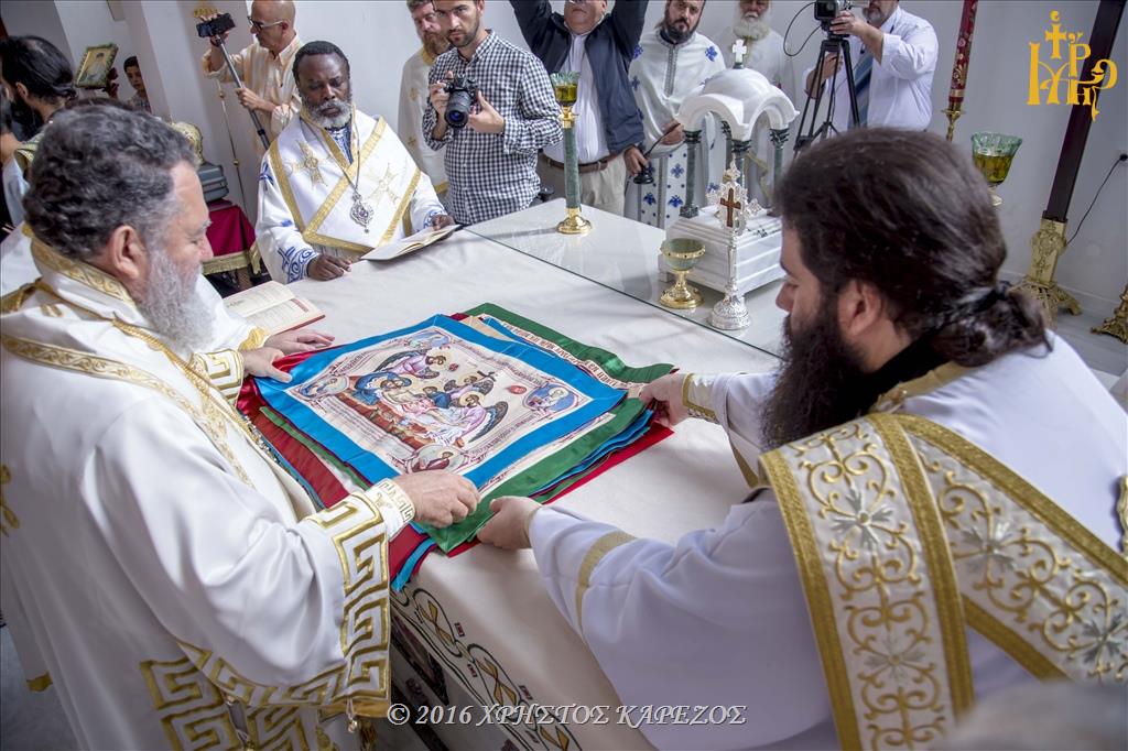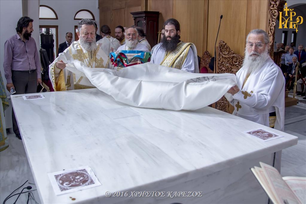 Ως ορίζει το τυπικό των Εγκαινίων, μετά την Ακολουθία του Όρθρου έγινε τριπλή λιτάνευσης των Αγίων Λειψάνων πέριξ του Ιερού Ναού και στη συνέχεια μετά την πανηγυρική είσοδο εντός αυτού ακολούθησε ο καθαγιασμός της Αγίας Τραπέζης με την εμφύτευση εις αυτήν των Ιερών Λειψάνων.
