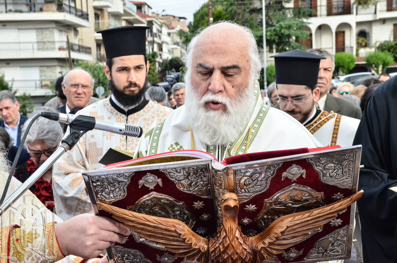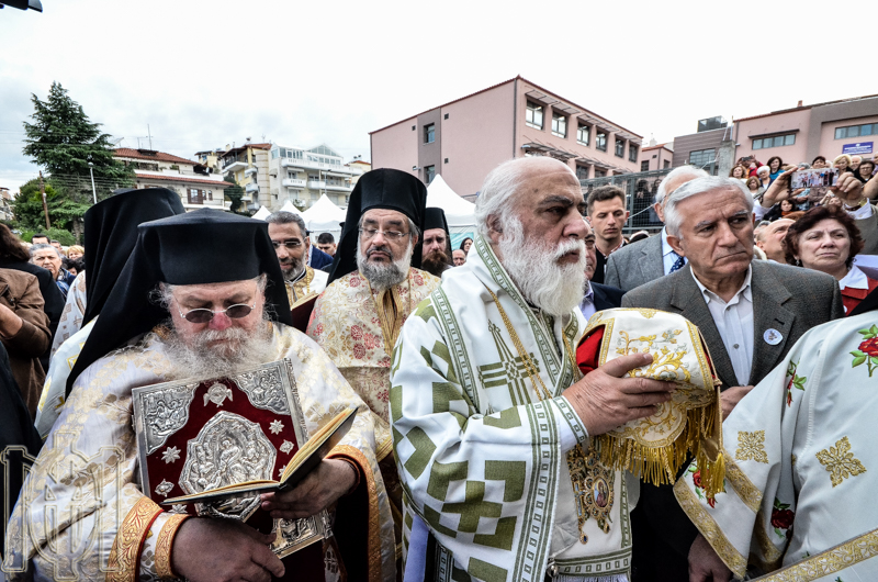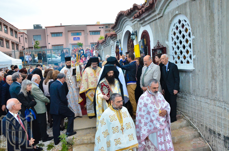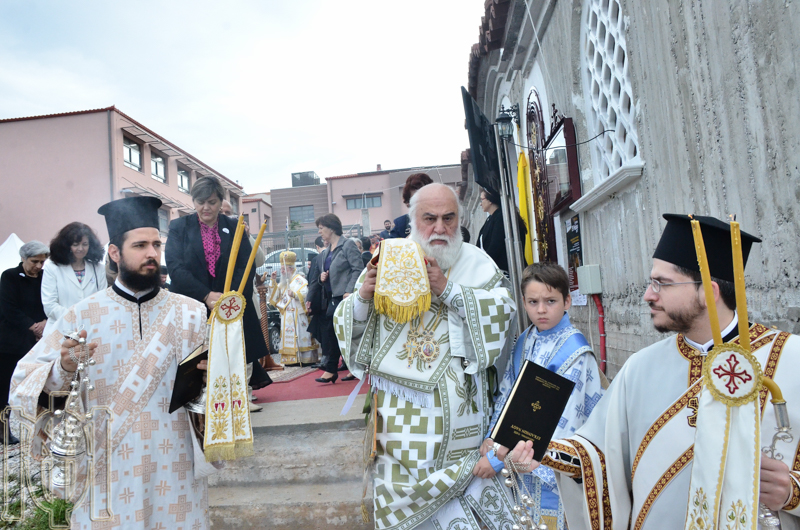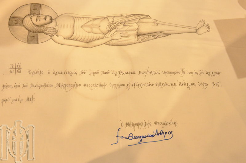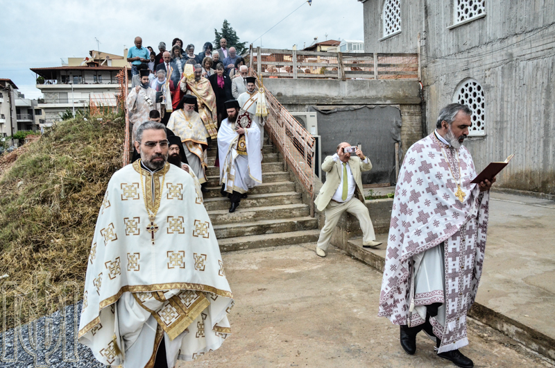 Στο τέλος του πανηγυρικού Συλλείτουργου, ο Μητροπολίτης Θεσσαλονίκης κ. Άνθιμος στον σύντομο λόγο του συνεχάρη και ευχαρίστησε όλους, τις αρχές, τους Δημάρχους της περιοχής και τις διάφορες υπηρεσίες, όπως και  τις εκκλησιαστικές επιτροπές και ιδιαιτέρως τον υπεύθυνο εφημέριο πρωτοπρεσβύτερο π. Χρήστο Βρατζίδη ο οποίος μαζύ με τους συνεργάτες του από την πρώτη ημέρα της θεμελιώσεως της εκκλησίας την 12-5-2012 έως και σήμερα ενήργησαν και ενεργούν για την αποπεράτωση του ιερού Ναού.