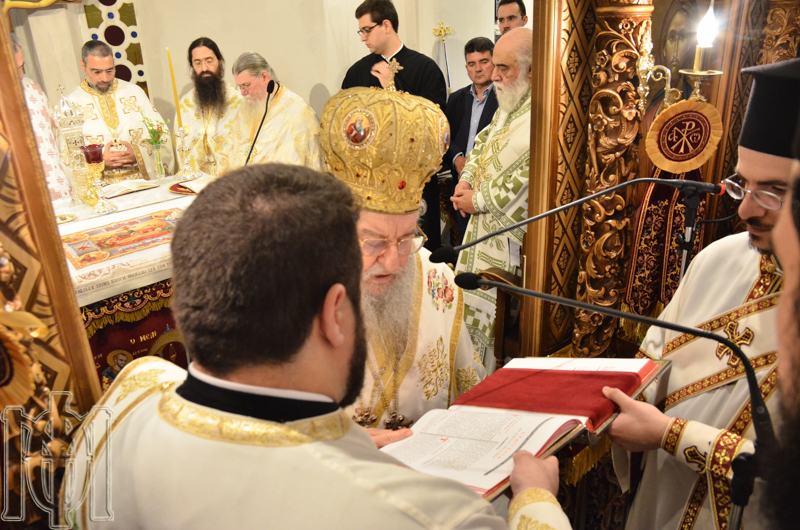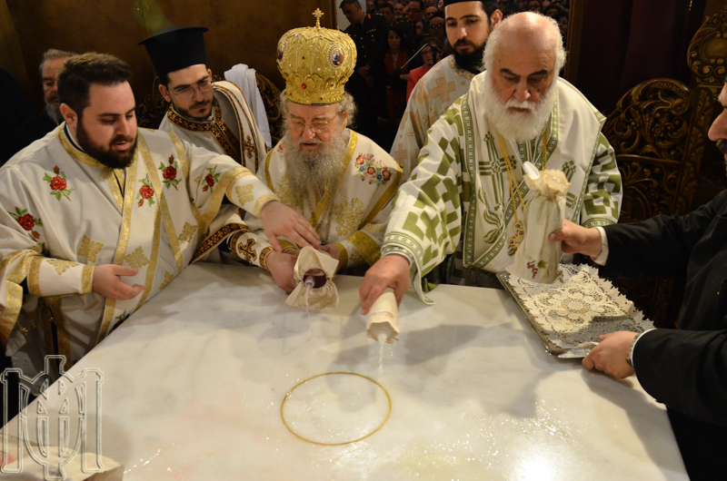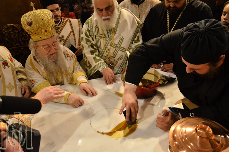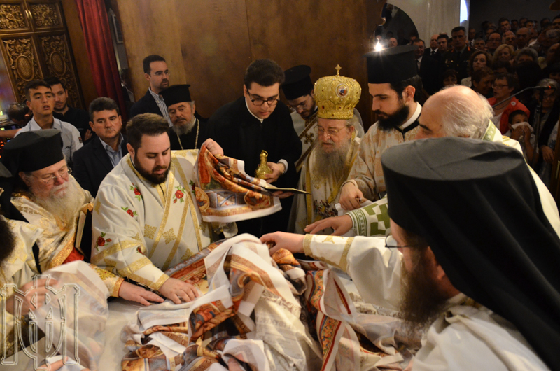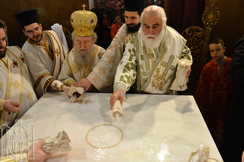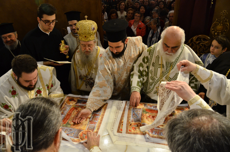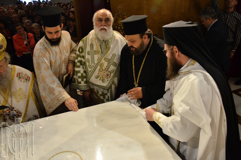 Το πρωί της Κυριακής έγινε η ακολουθία του όρθρου προεξάρχοντος του Σεβασμιωτάτου Μητροπολίτου Μιλήτου κ. Αποστόλου, καθηγουμένου της Ιεράς Πατριαρχικής και Σταυροπηγιακής Μονής της αγίας Αναστασίας της Φαρμακολυτρίας. Μετά το τέλος του Όρθρου ετελέσθη η ακολουθία των Εγκαινίων σύμφωνα με το τυπικό της Εκκλησίας μας από τον κ. Άνθιμο και από τον κ. Απόστολο με την συμμετοχή των συλλειτουργούντων κληρικών της τοπικής μας ‘Εκκλησίας. Στη συνέχεια έγινε η πρώτη αρχιερατική Θεία Λειτουργία με την παρουσία των τοπικών αρχών και του ευσεβούς λαού.